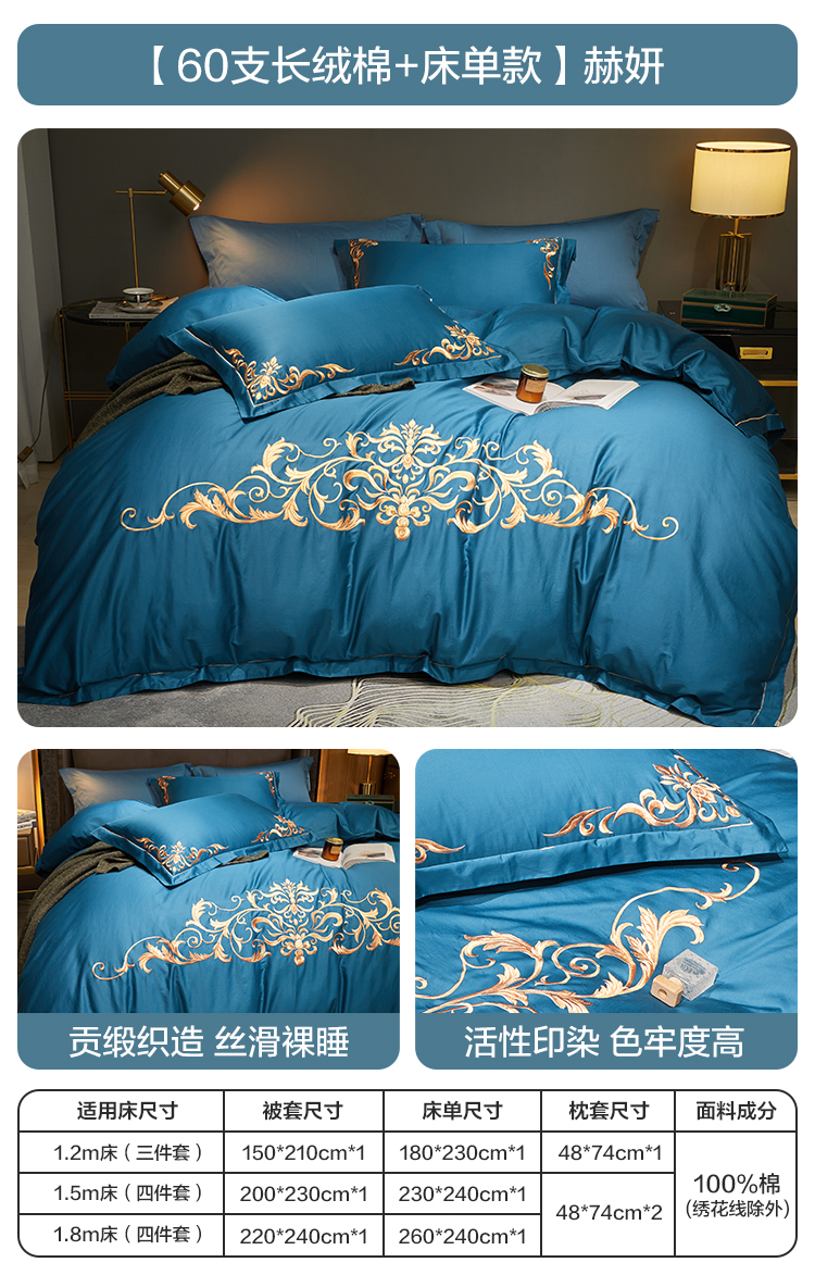 博洋 Хлопковый комплект, хлопковое одеяло, пододеяльник, простыня, покрывало, 60 шт, 4 предмета, легкий роскошный стиль