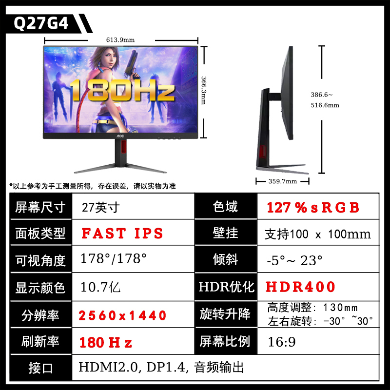 [[[[[[[[[[[[[[[[ аппаратные средства Низкий blu-ray 】 Q27G4P/27 дюймовый /2K/200 Гц/быстрый экран IPS/ лифтинг