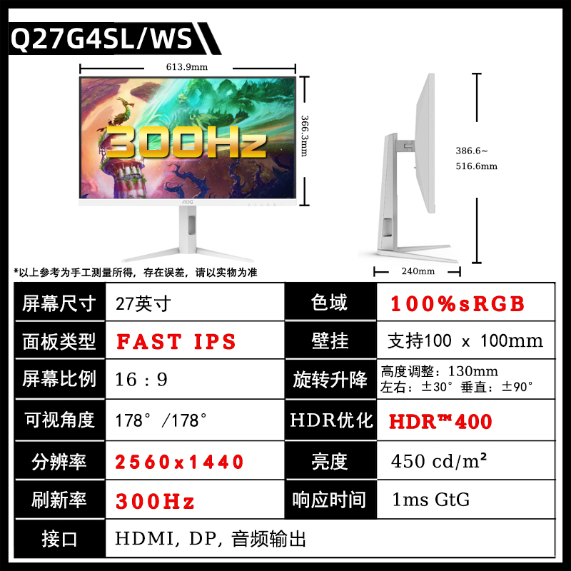 [[[[[[[[[[[[[[[[ модернизированный белый 】 Q27G4SL/WS 2K/300H/FAST IPS/ лифтинг вращение