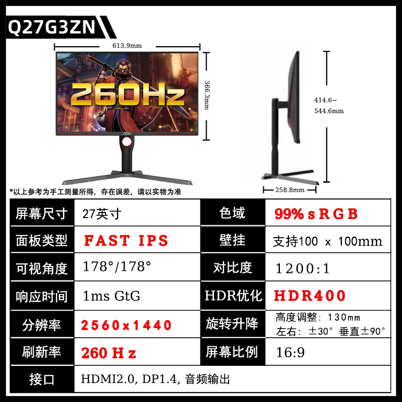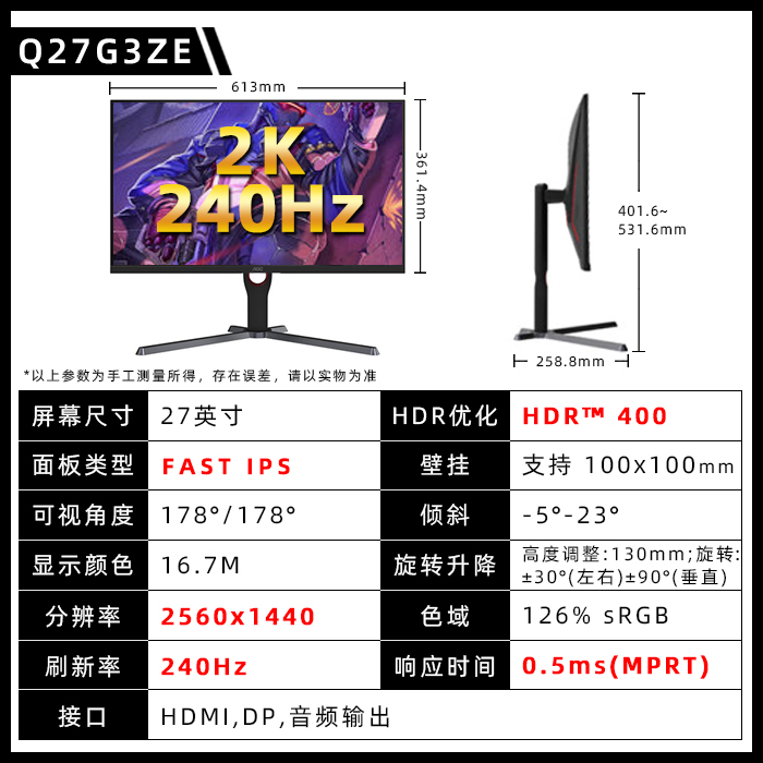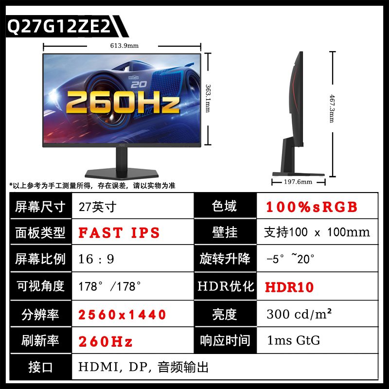 [[[[[[[[[[[[[[[[ продажи 】 Q27G10ZE/27 дюймовый /2K/260 Гц/10 бит/быстрый экран IPS