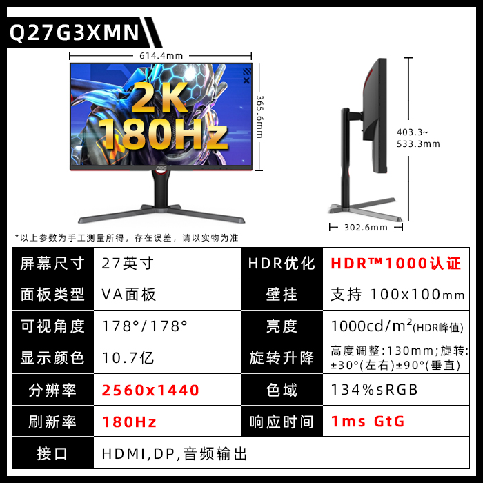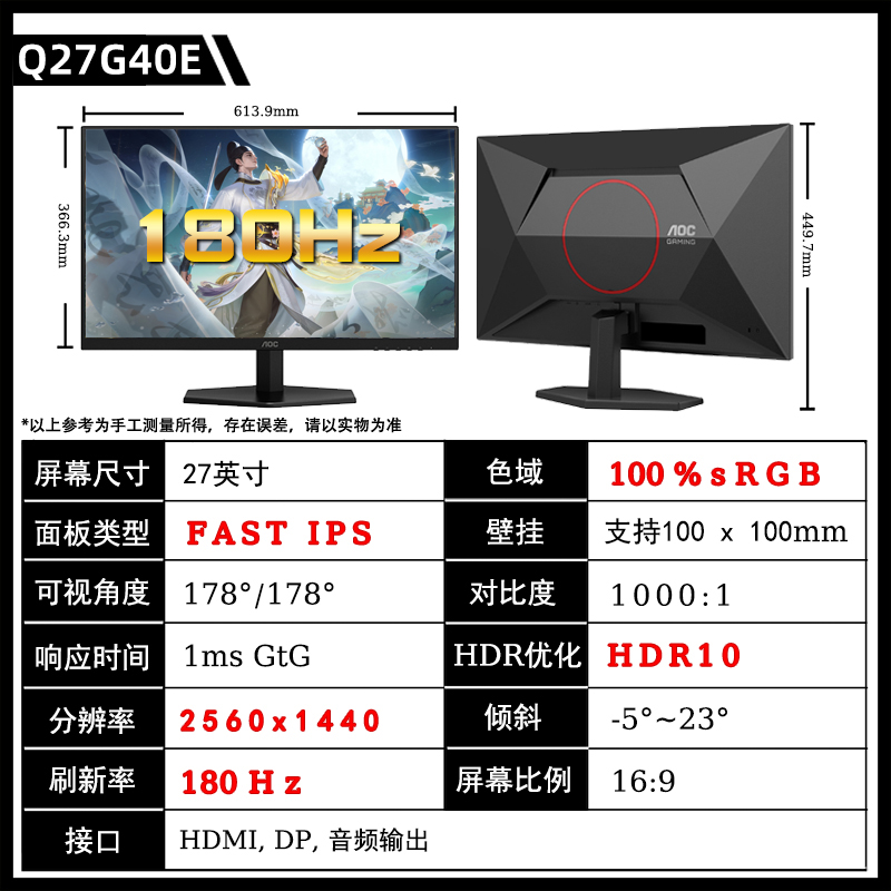 [[[[[[[[[[[[[[[[ продажи 】 Q27G10E/27 дюймовый /2K/180 Гц/10 бит/быстрый экран IPS