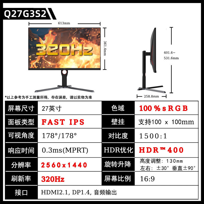 【Q27G3S обновление 】 Q27G3S2 2K/320 Гц/быстрый экран IPS