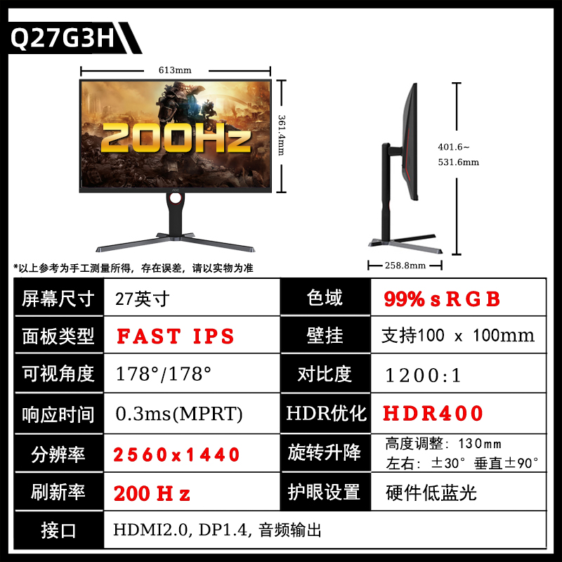 [[[[[[[[[[[[[[[[ первобытный 200 Гц】 Q27G3H/27 дюймовый /2K/200 Гц/быстрый экран IPS/ лифтинг