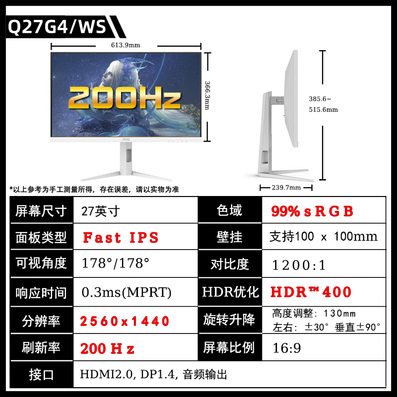 [[[[[[[[[[[[[[[[ белый новые стиль 】 Q27G4/WS 2K/200H/FAST IPS/ лифтинг вращение