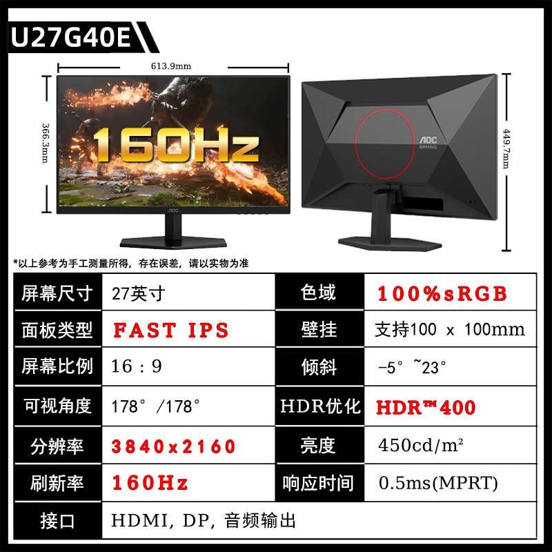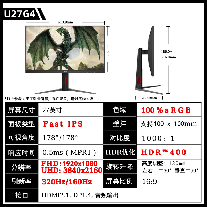 [[[[[[[[[[[[[[[[ два режима система 】 U27G4/27 дюйм/4K/160 Гц/320 Гц случайный переключение