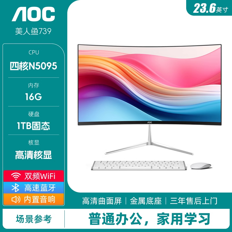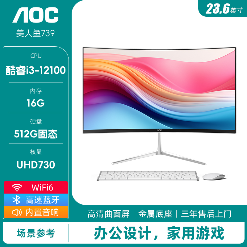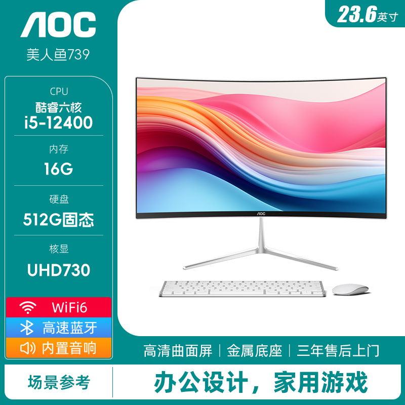 AOC Русалки 739 поверхности экран кузов компьютер 14 поколение ядро i5i7 тонкий игра домой офис дизайн рабочий стол машина 23.6 дюймовый