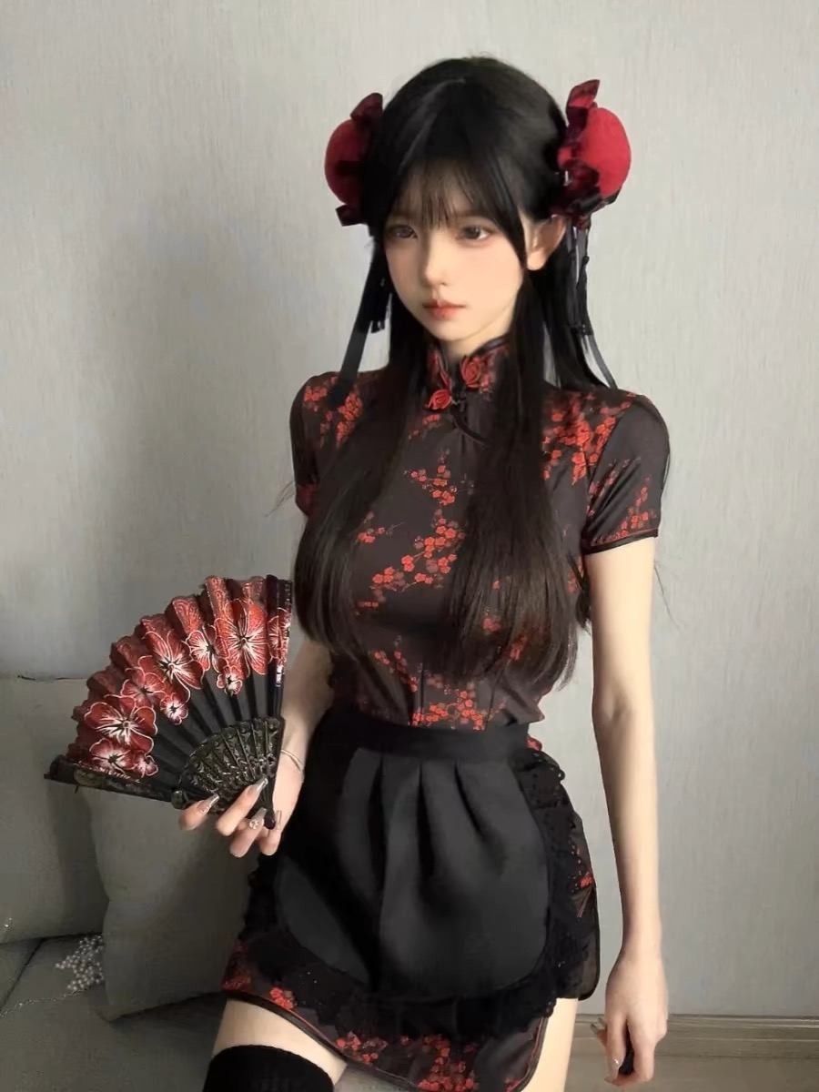Ципао, платье, японский комплект, фартук, китайский стиль, стиль Лолита, косплей