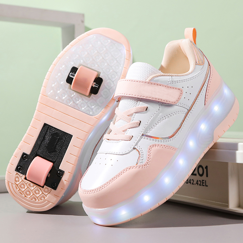 Детские невидимые туфли, коньки, спортивная двухколесная светящаяся обувь подходит для мужчин и женщин