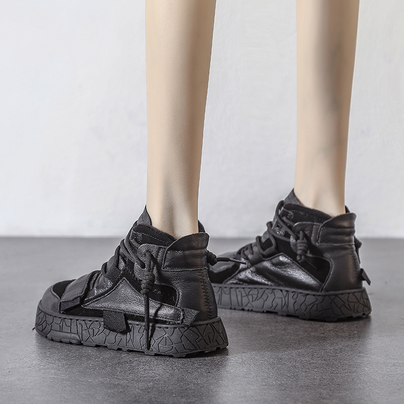 Флисовые высокие сапоги на липучке, кожаная белая обувь, спортивные туфли на платформе для отдыха, осенние, из натуральной кожи