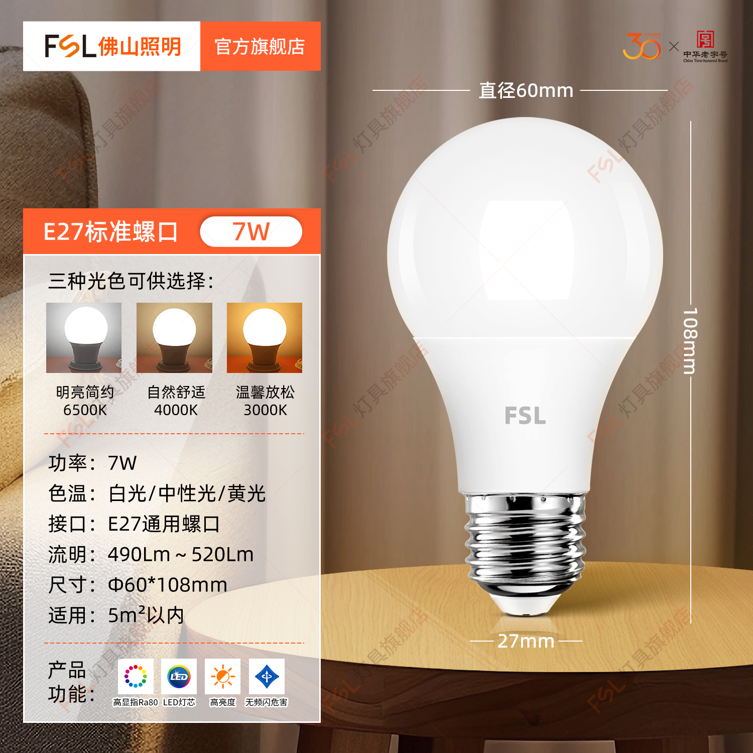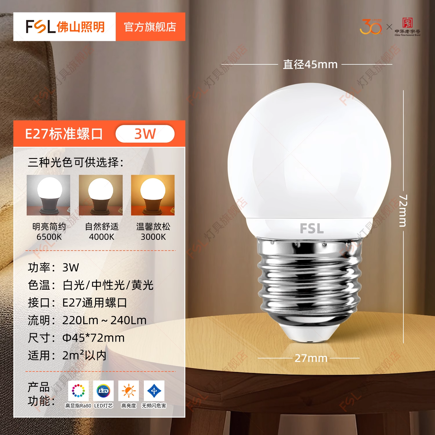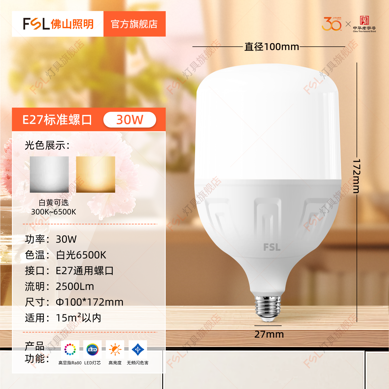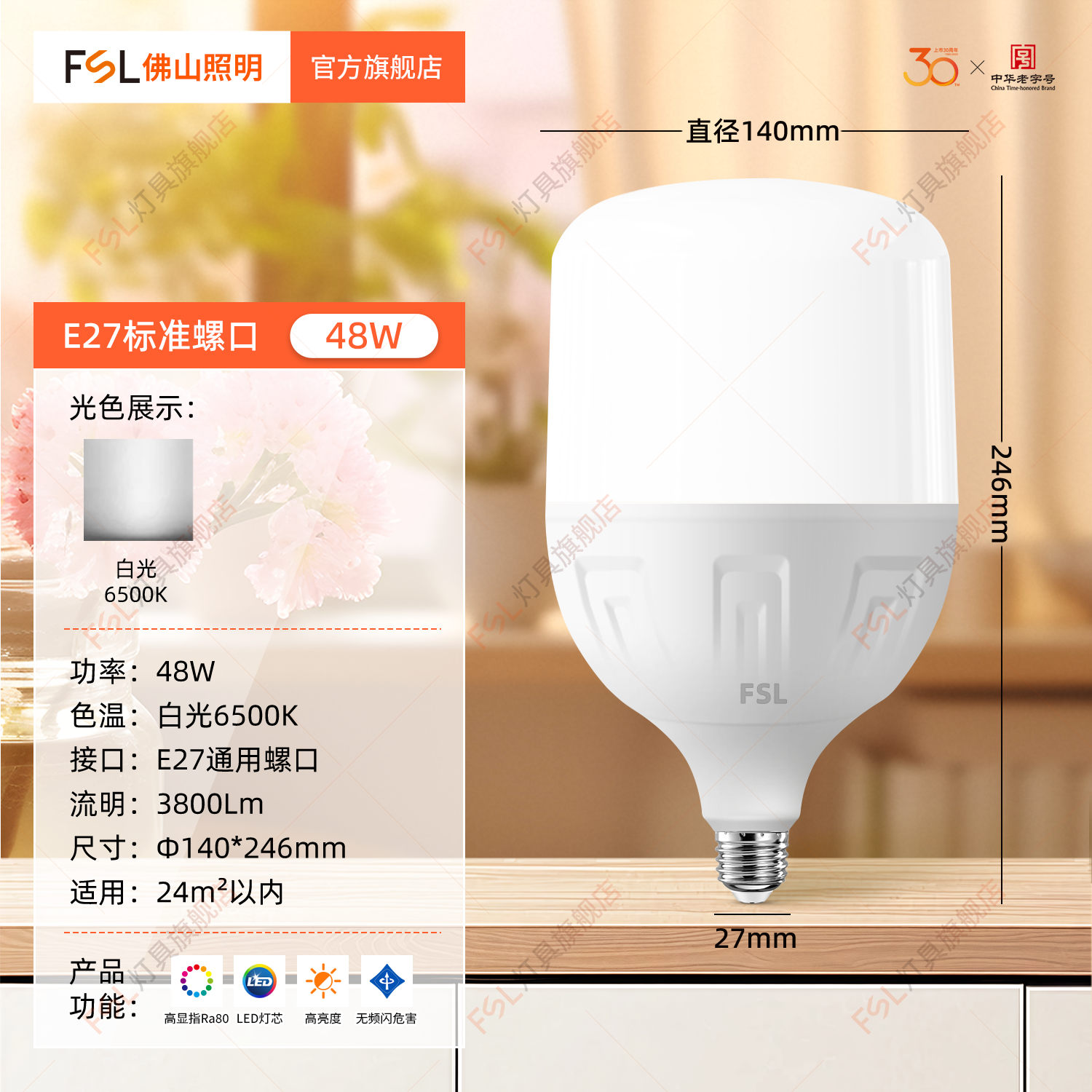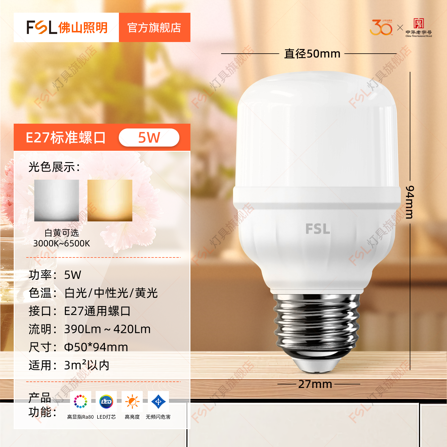 FSL Светодиодный светильник, лампочка, супер яркая энергосберегающая настольная лампа, с винтовым цоколем, защита глаз, высокая мощность