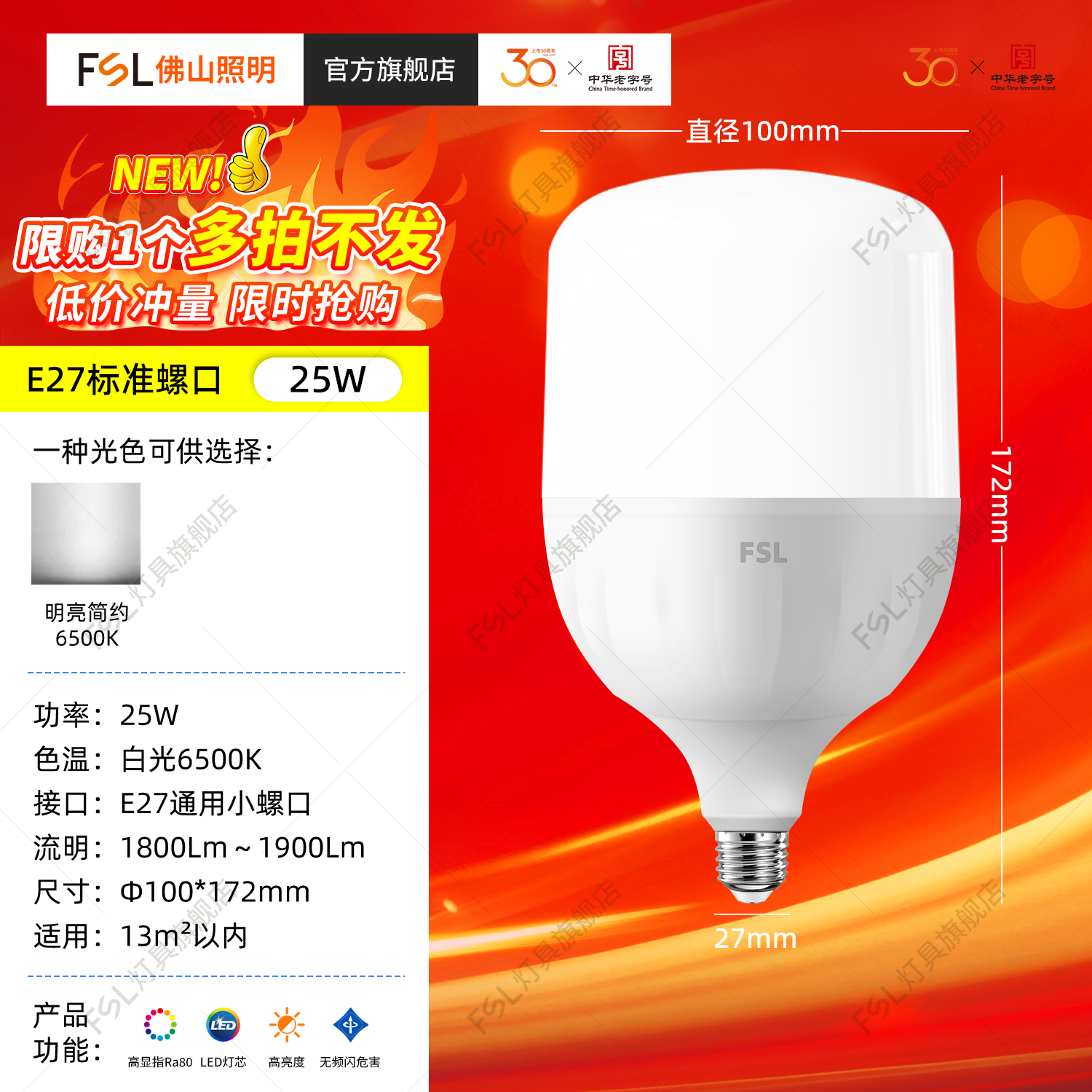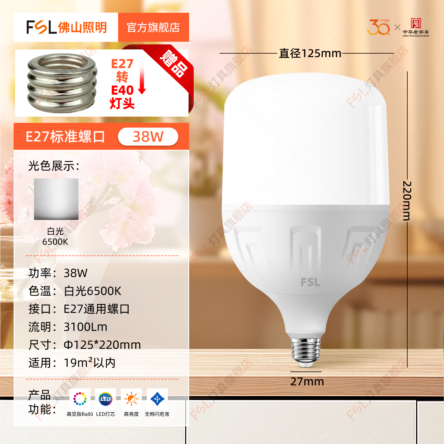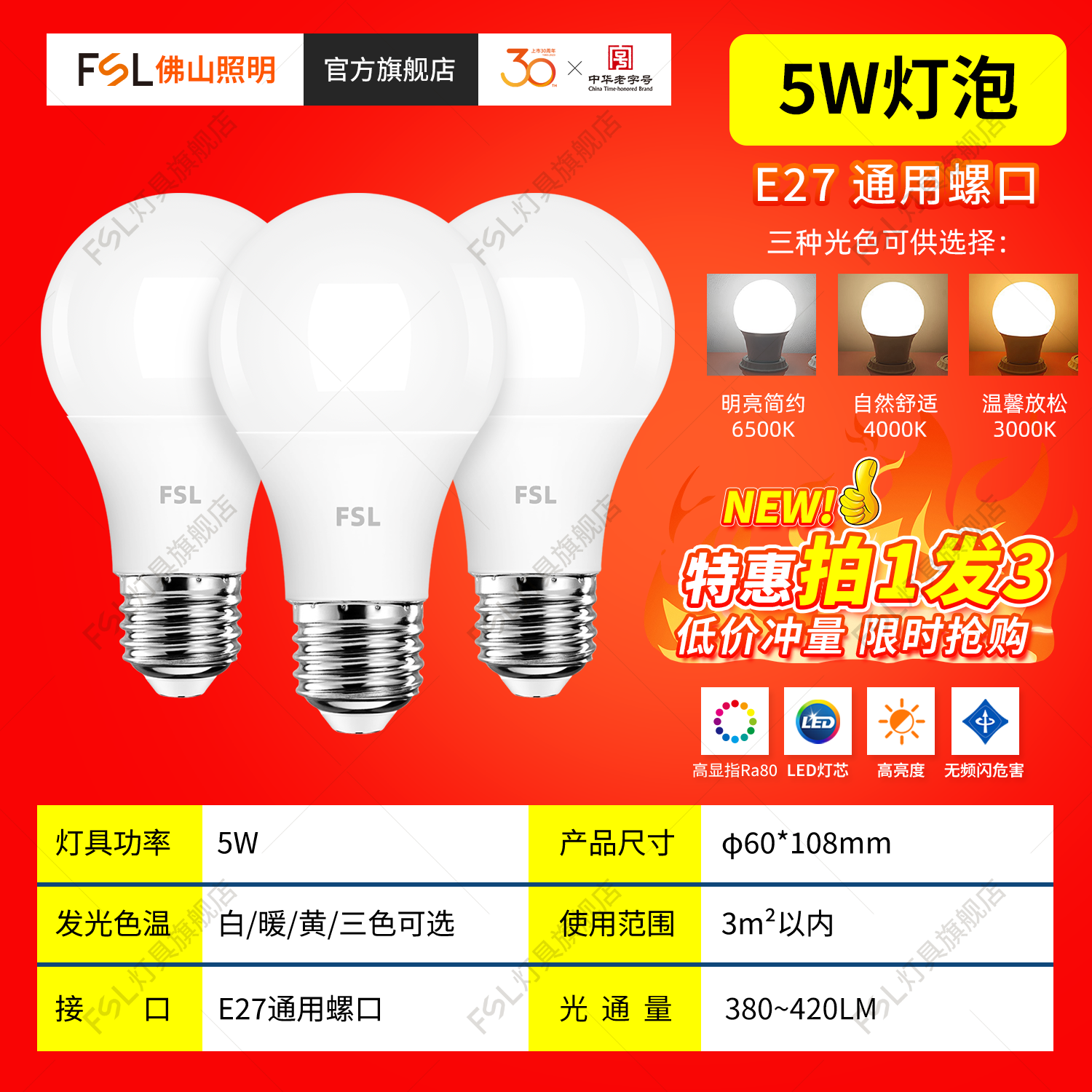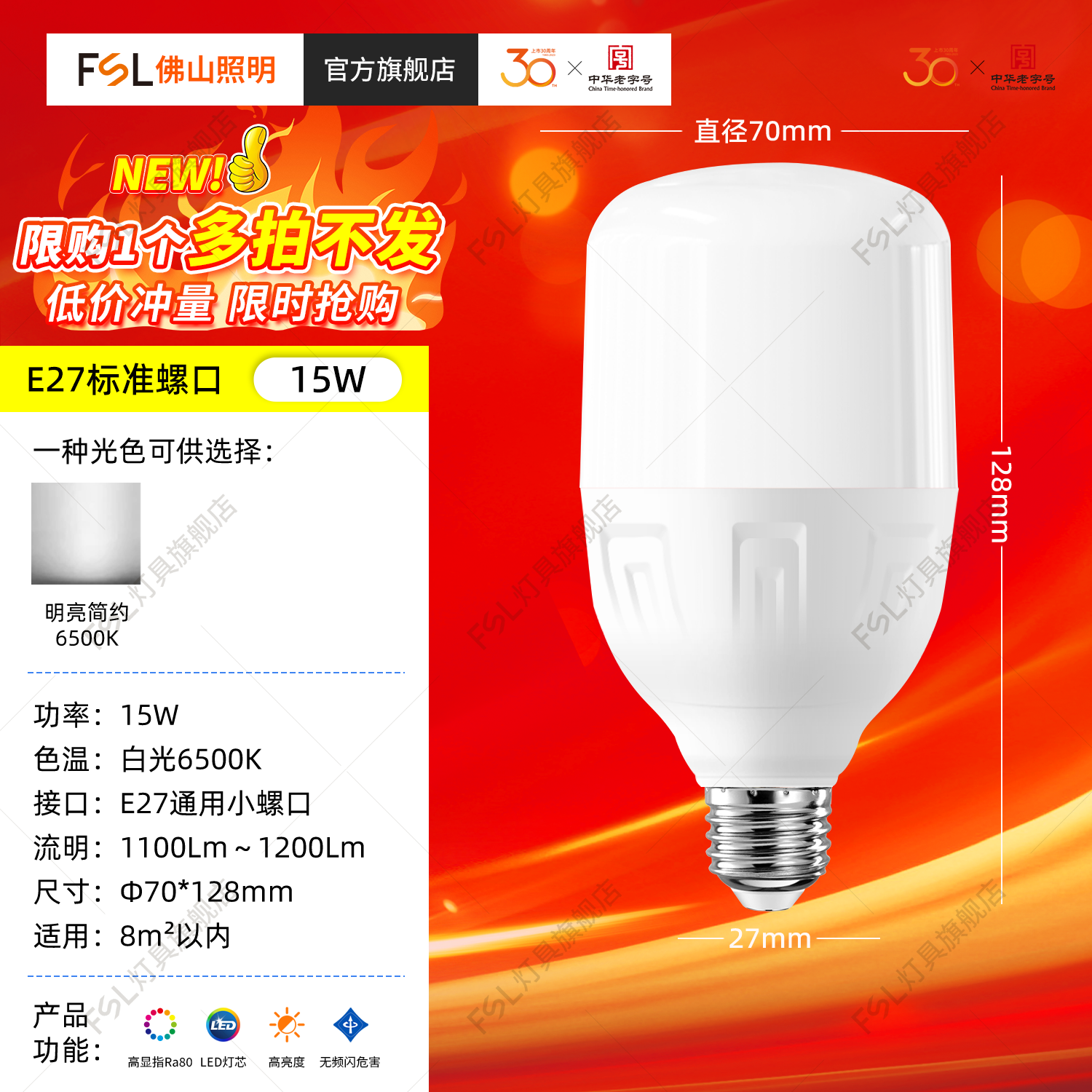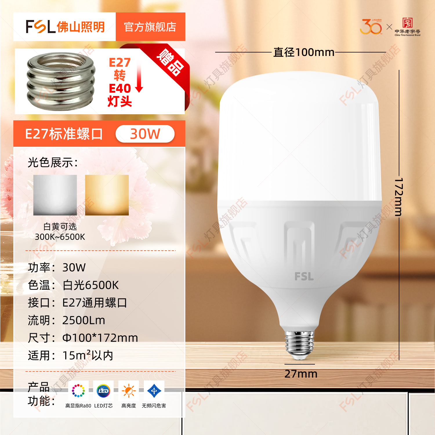 FSL Светодиодный светильник, лампочка, супер яркая энергосберегающая настольная лампа, с винтовым цоколем, защита глаз, высокая мощность