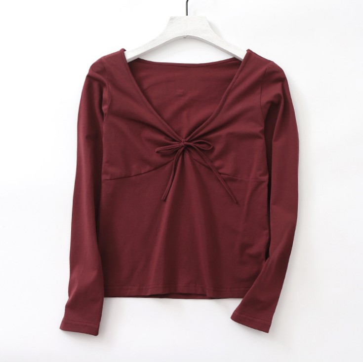 Хлопковая спортивная одежда, лонгслив для школьников, облегающий крой, V-образный вырез, длина миди