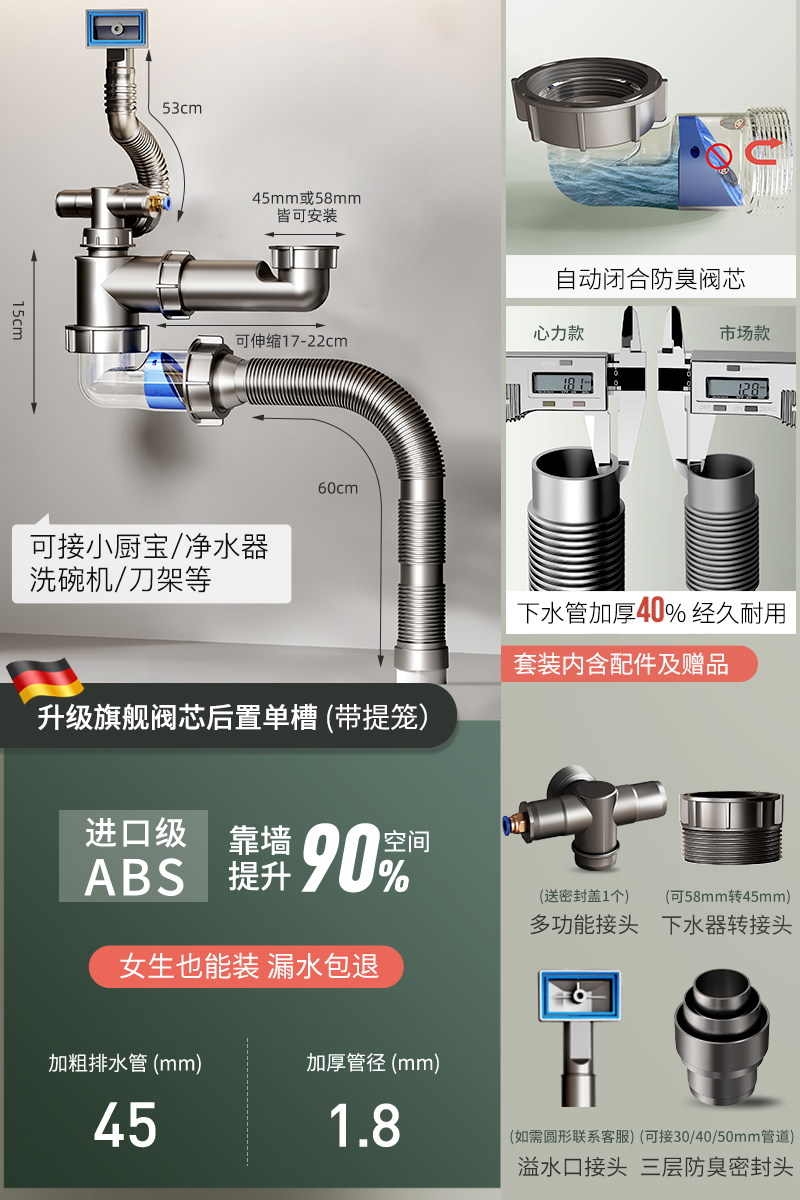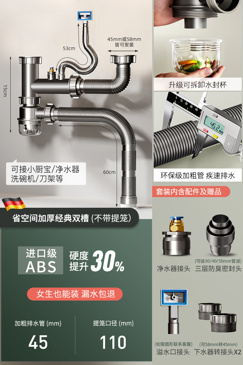 Кухня аквариум запуск трубы монтаж Посуда моно,парный крышка гнезда anti Вонючий дренажная труба тройник Пул для промывания посуды общий