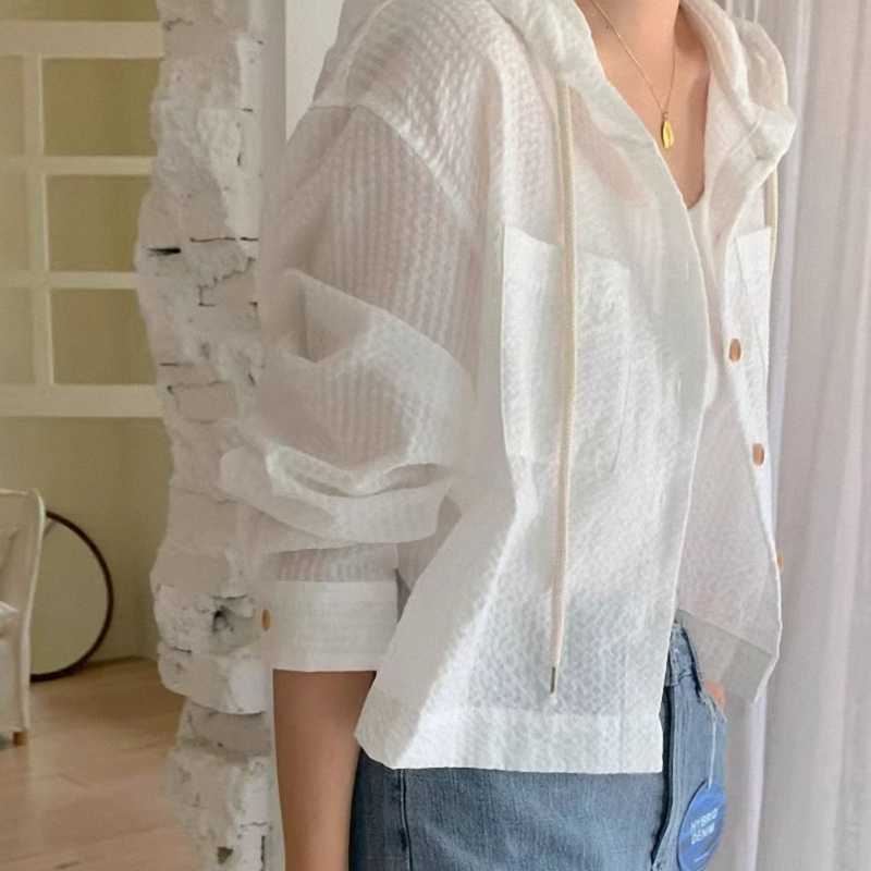 Летняя дышащая рубашка с капюшоном, свободный крой, защита от солнца