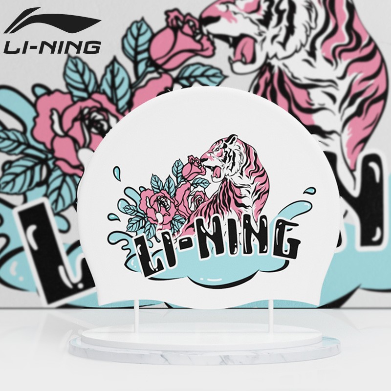 Li ning шапочка для купания мисс длинные волосы увеличение счет водонепроницаемый [不勒头] специальность силиконовый шапочка для купания ребенок печать плавать [帽]