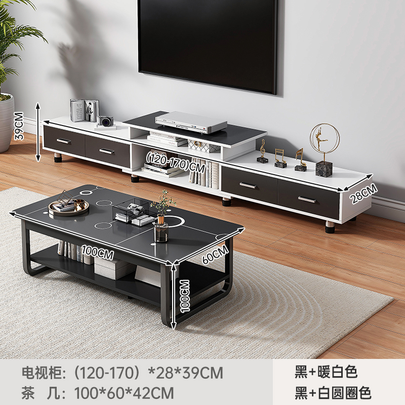 Протяжение (120-170) СМ телевизионный шкаф + кофейный столик черный + теплый белый
