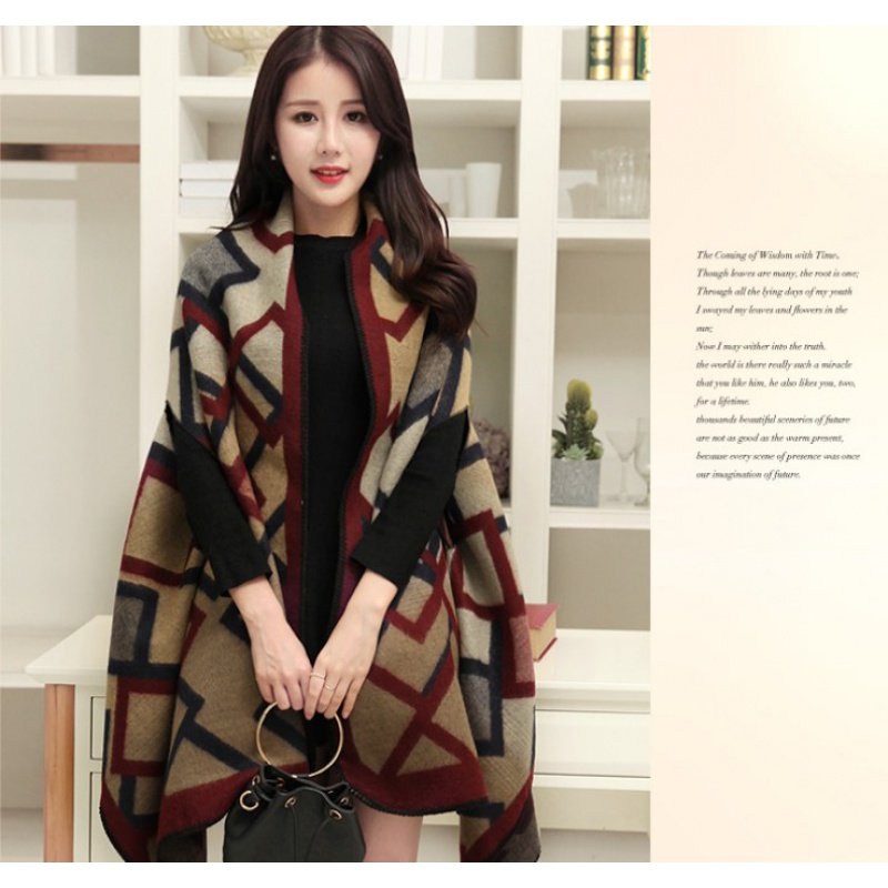 Накидка, демисезонный шарф, универсальный плащ, удерживающая тепло большая куртка, в корейском стиле