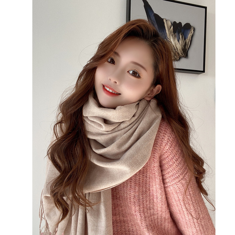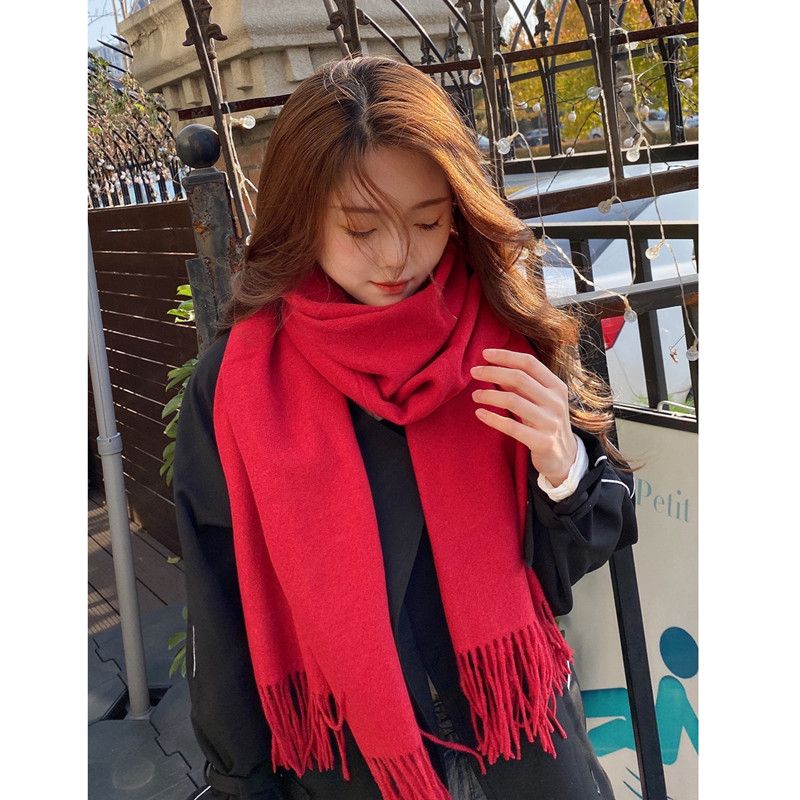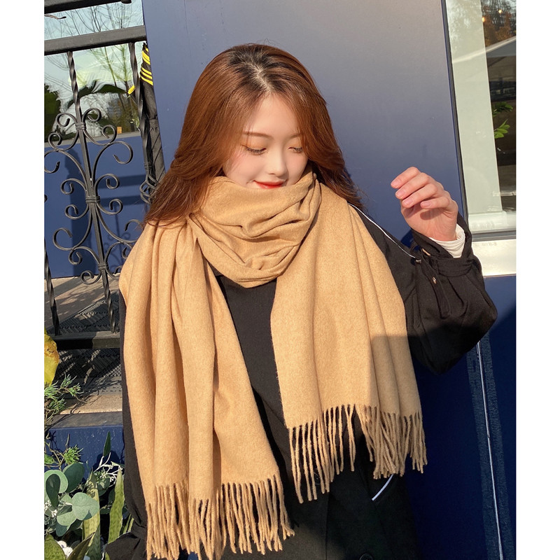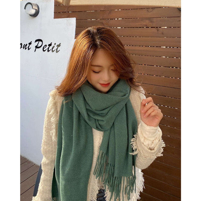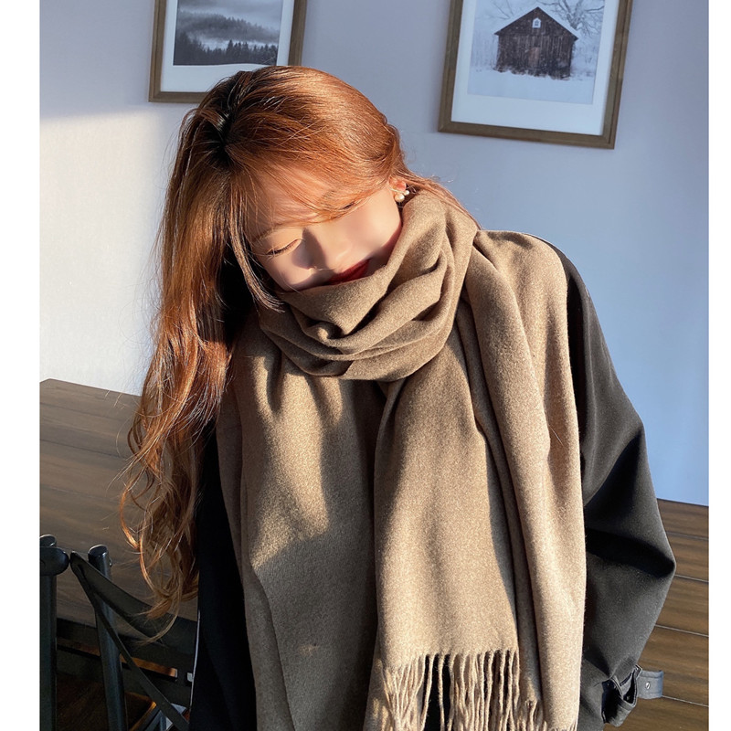 Однотонный зимний шарф, универсальная удерживающая тепло длинная японская накидка для влюбленных, длина макси, увеличенная толщина, в корейском стиле