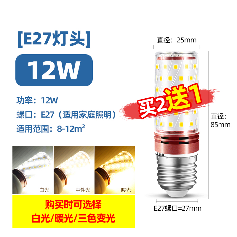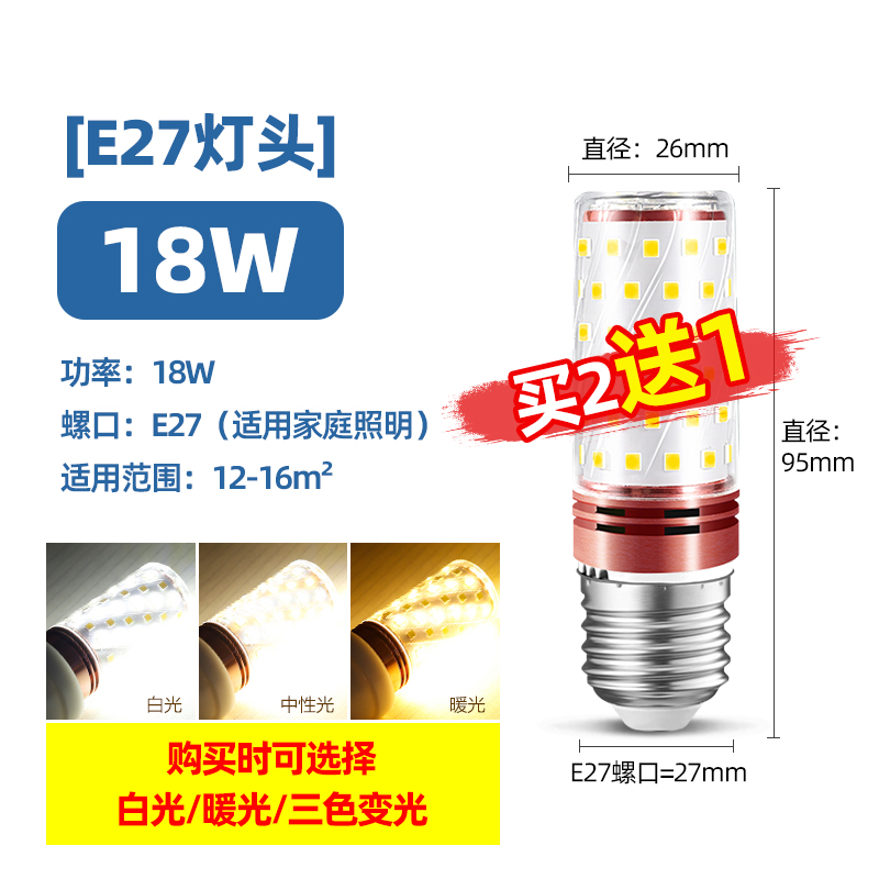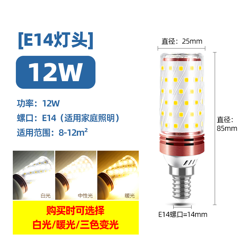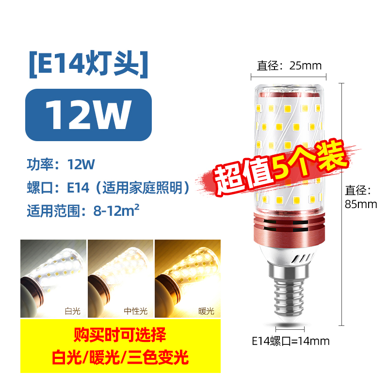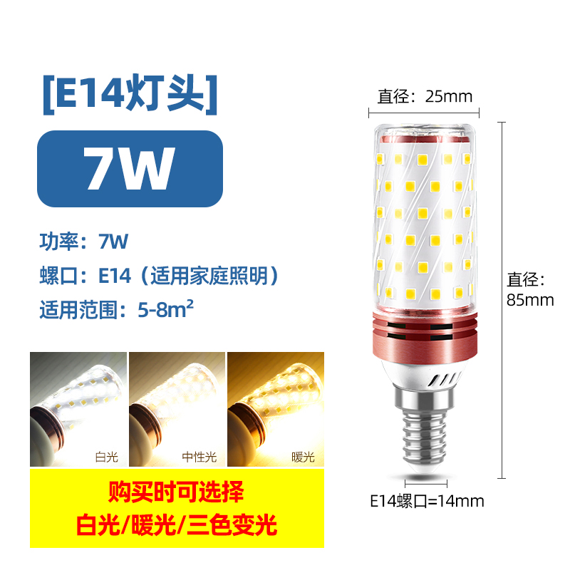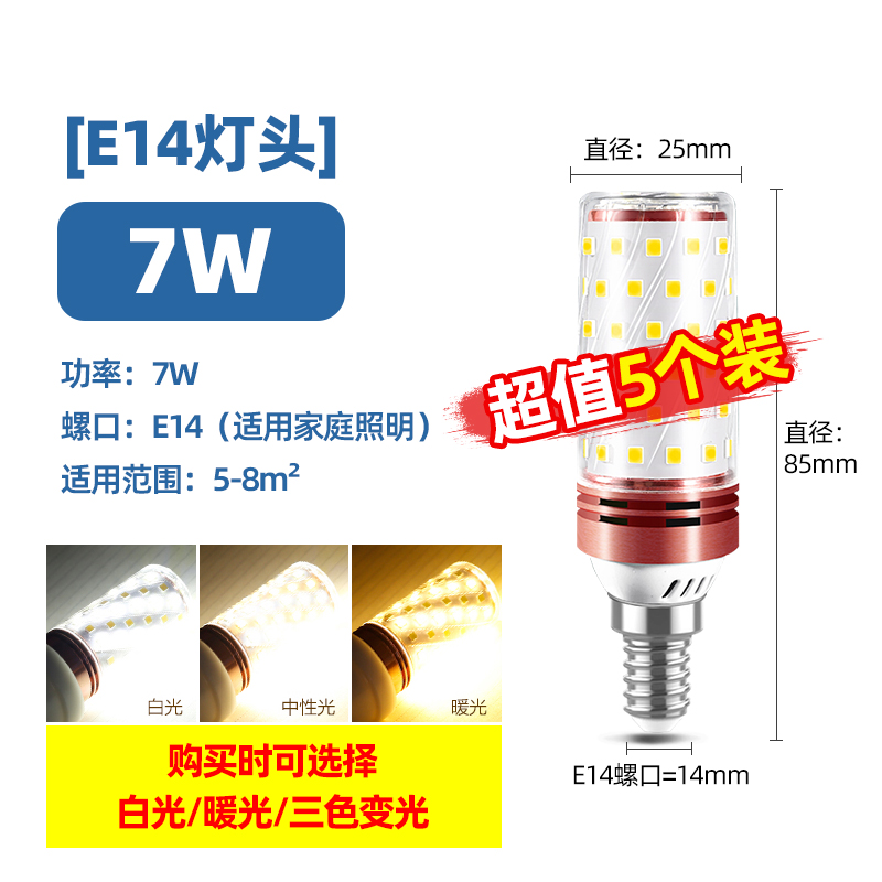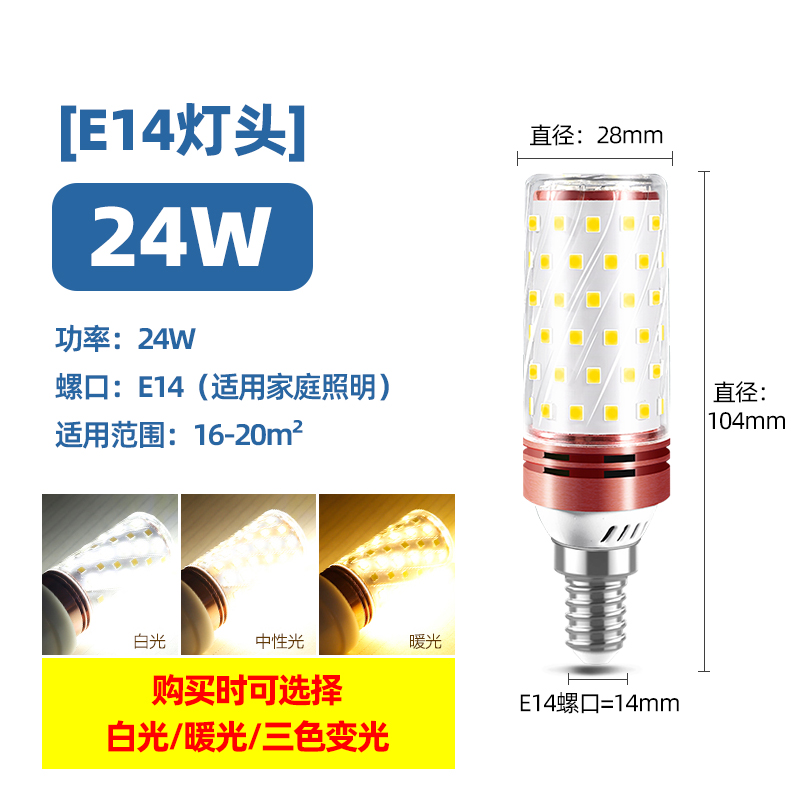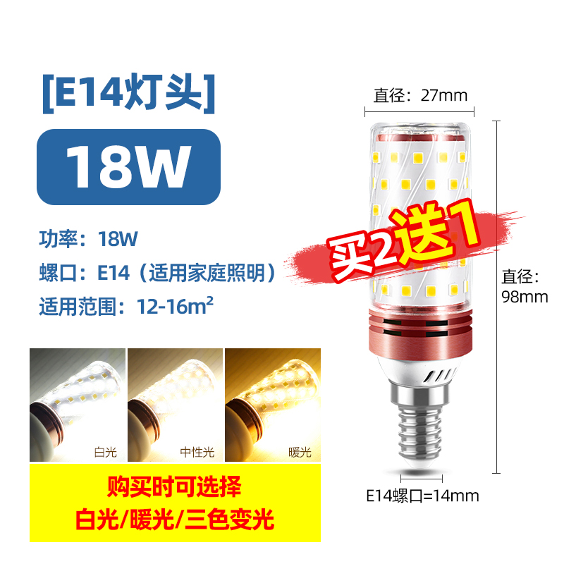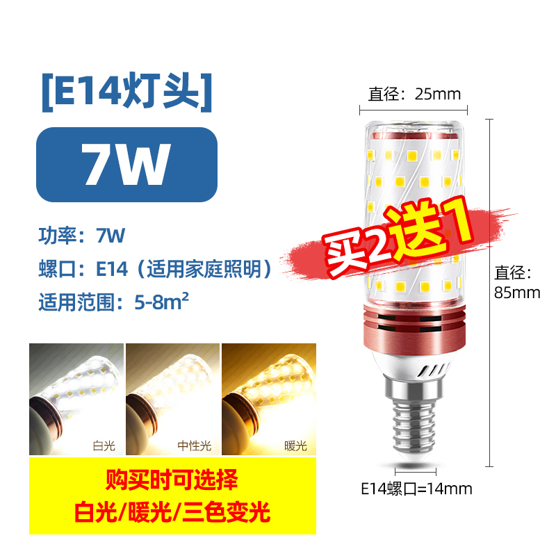 Светодиодная лампочка, свеча, люстра, источник света, энергосберегающая лампа, с винтовым цоколем, три цвета