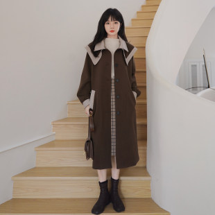 Военно-морское шерстяное демисезонное длинное шерстяное пальто, подходит для подростков, 2023 года, средней длины