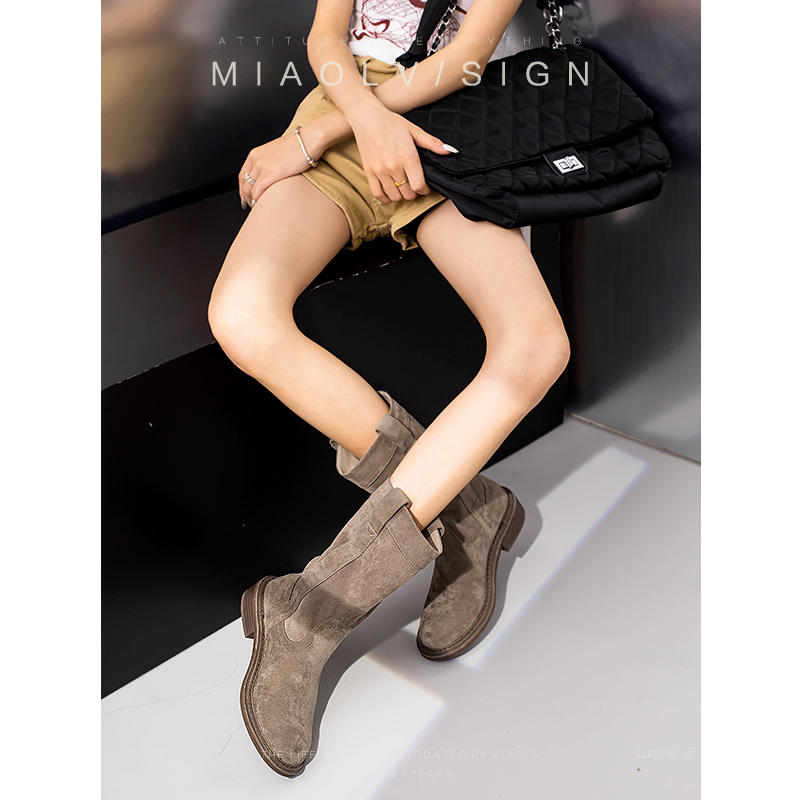 "Замечательная пара" американский Горячая девушка ~ ретро запад Ботинок трубка Boot женский 2024 джокер значительно тоньше ретро сигарета ботинки